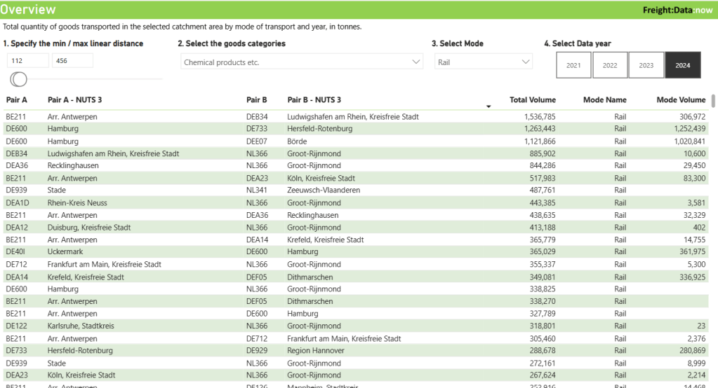 Analyse der besten (größten) Route auf Basis bestimmter Parameter: Routenlänge (min/max), Warengruppe(n) und den Verkehrsmodi. Im Ergebnis werden die Routen mit den meisten Tonnen zu den Parametern in angezeigt. Ideal für die Angebots-entwicklung in der Logistik.